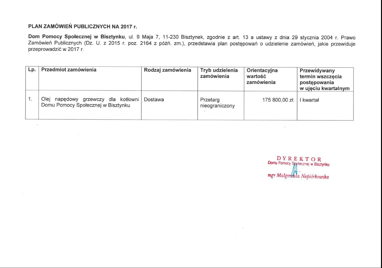 Wersja nieobowiązująca z dnia 19-01-2017 14:02:21 Drukuj Plan zamówień publicznych Domu Pomocy Społecznej w Bisztynku Załączniki Plan zamówień publicznych Domu Pomocy Społecznej w Bisztynku format: image/jpeg, rozmiar: 90.3 KB, data dodania: 19-01-2017 14:02:21 Wersja nieobowiązująca Strona może zawierać nieaktualną treść i załączniki. Możesz pozostać na tej stronie lub przejść na wersję z obowiązującą zawartością. Nie pokazuj ponownie Pozostań Przejdź do wersji obowiązującej